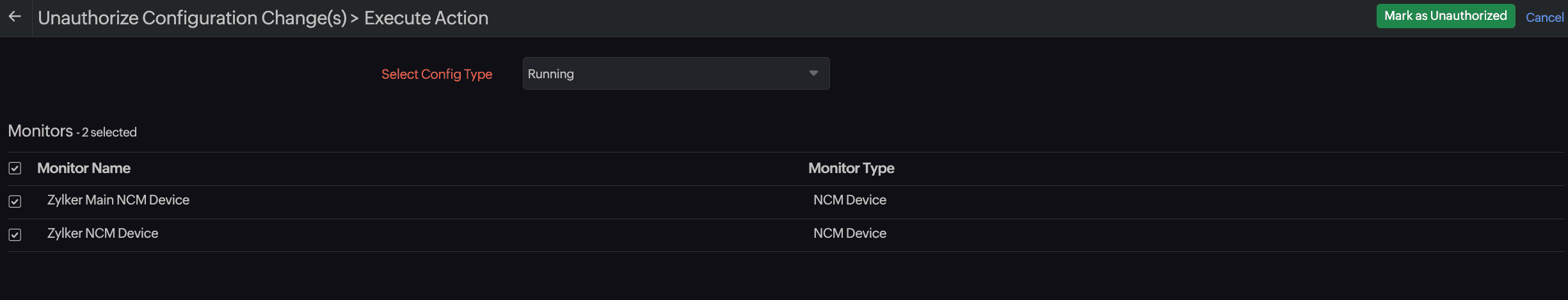- Unauthorize Configuration Change(s): Flag changes as unauthorized to identify and review unapproved modifications.