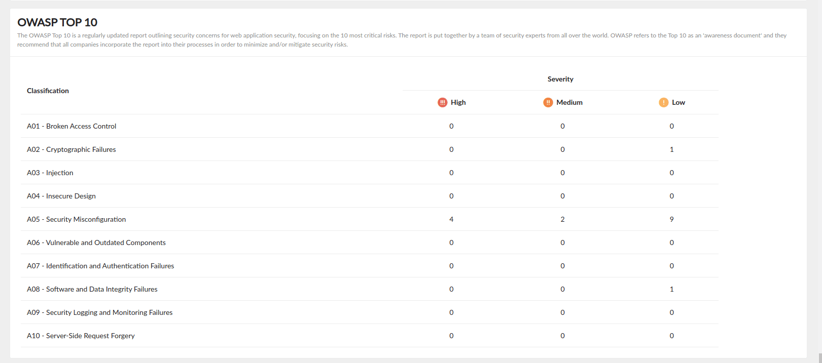 Once vulnerabilities are identified through assertions, Digital Risk Analyzer generates a comprehensive OWASP summary that provides users with key insights. The summary categorizes vulnerabilities under the OWASP Top 10, delivers detailed descriptions and severity assessments. It guides users with practical remediation