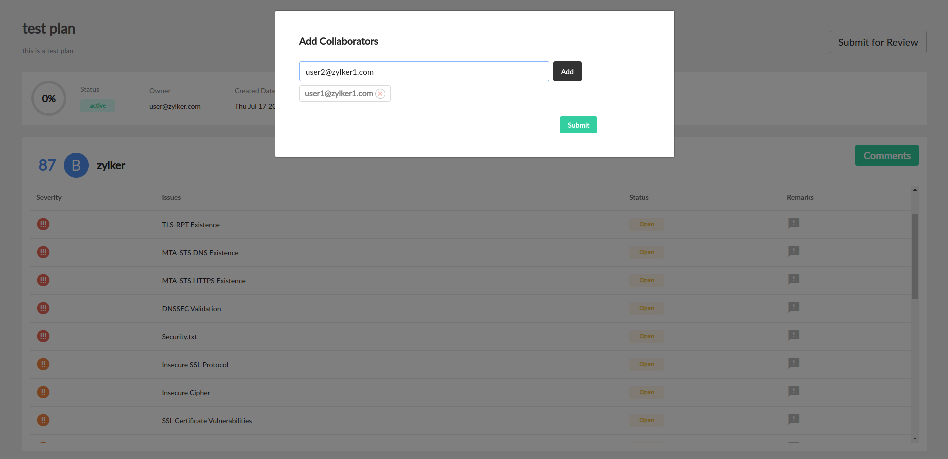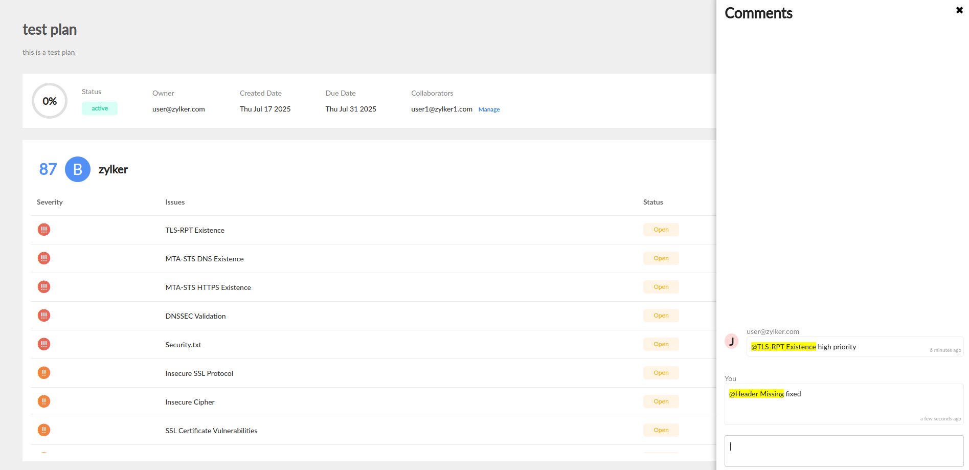- Once the collaborators start working on the plan, they can share their suggestions, resolve issues, and communicate the updates to the team through the comments section.