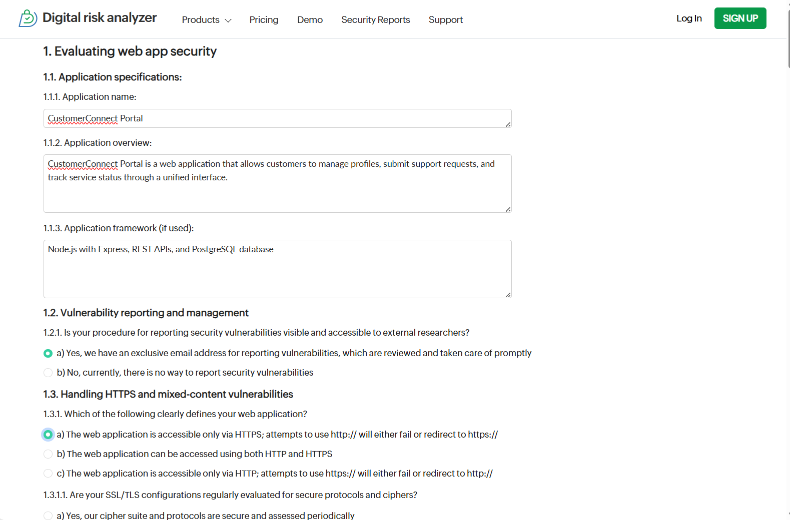 Security Questionnaire in Digital Risk Analyzer