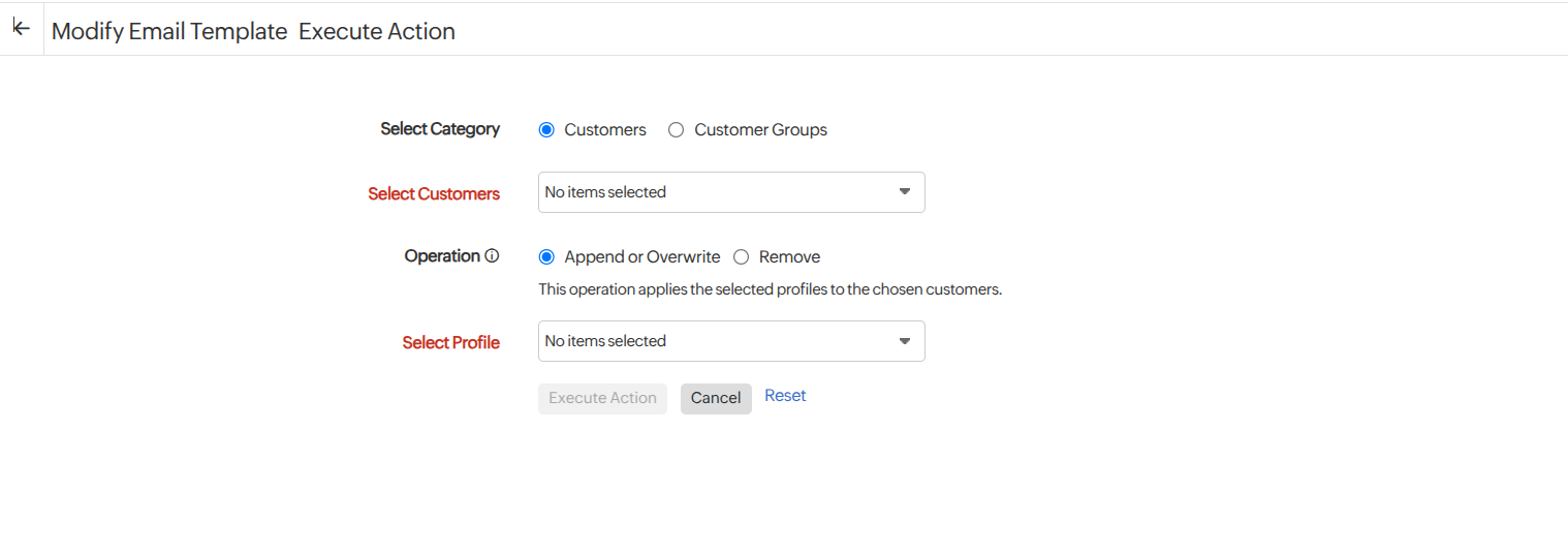 • Append or Overwrite: Assign the selected email template to the chosen customers or update an existing email template.