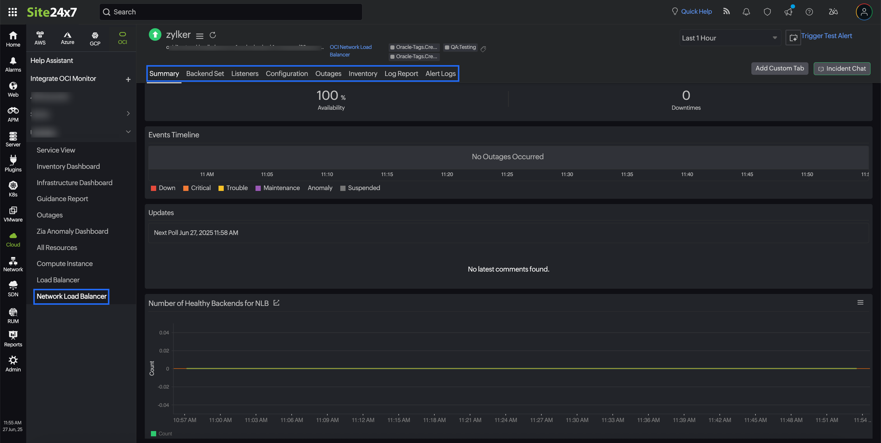 Site24x7’s integration with Oracle Cloud Infrastructure (OCI) Network Load Balancer enables end-to-end visibility and health tracking of your high-performance, low-latency load-balancing resources.