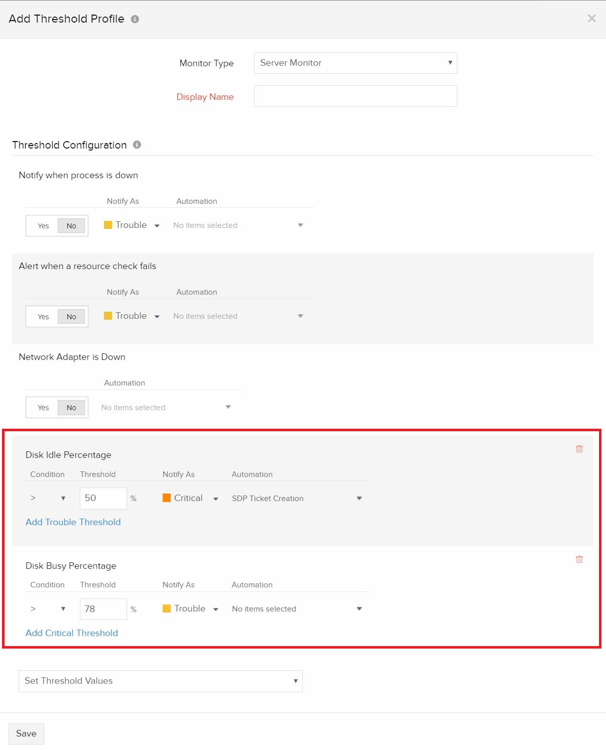 You can now set thresholds for the metrics disk idle and disk busy percentage.
