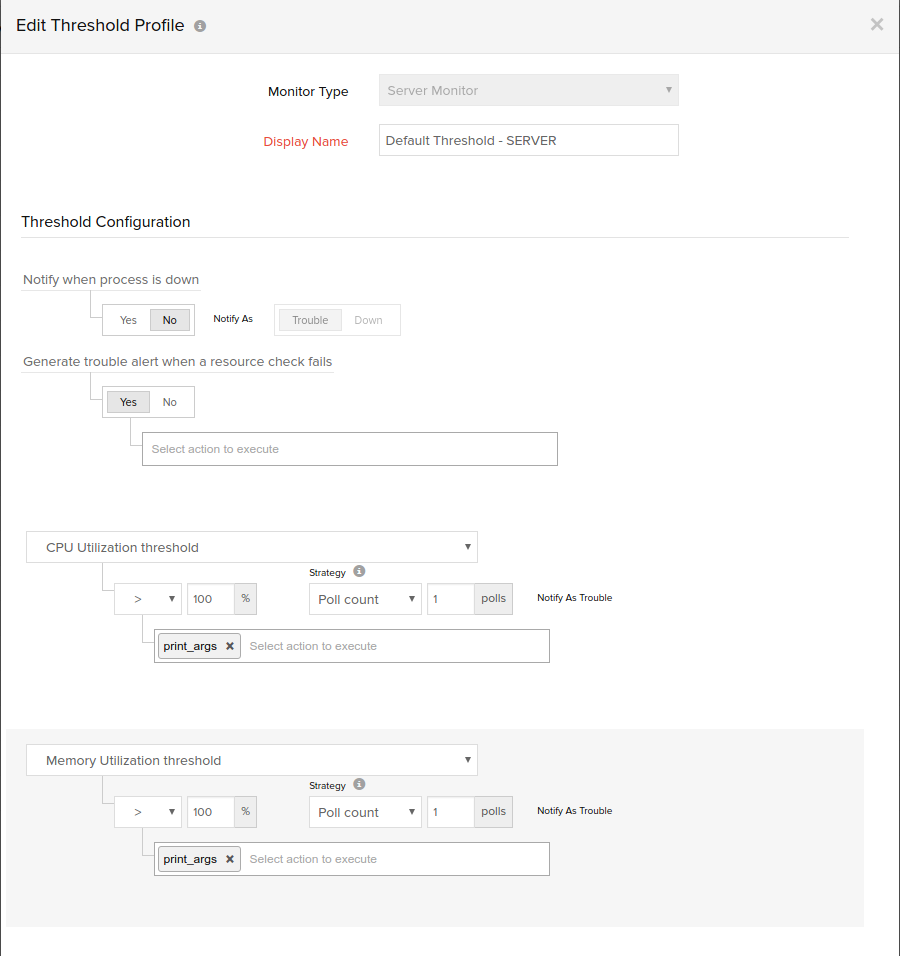 We are currently working on providing the capability to configure 'Actions' with every attribute inside the Threshold profile. Please find the sample screenshot below: