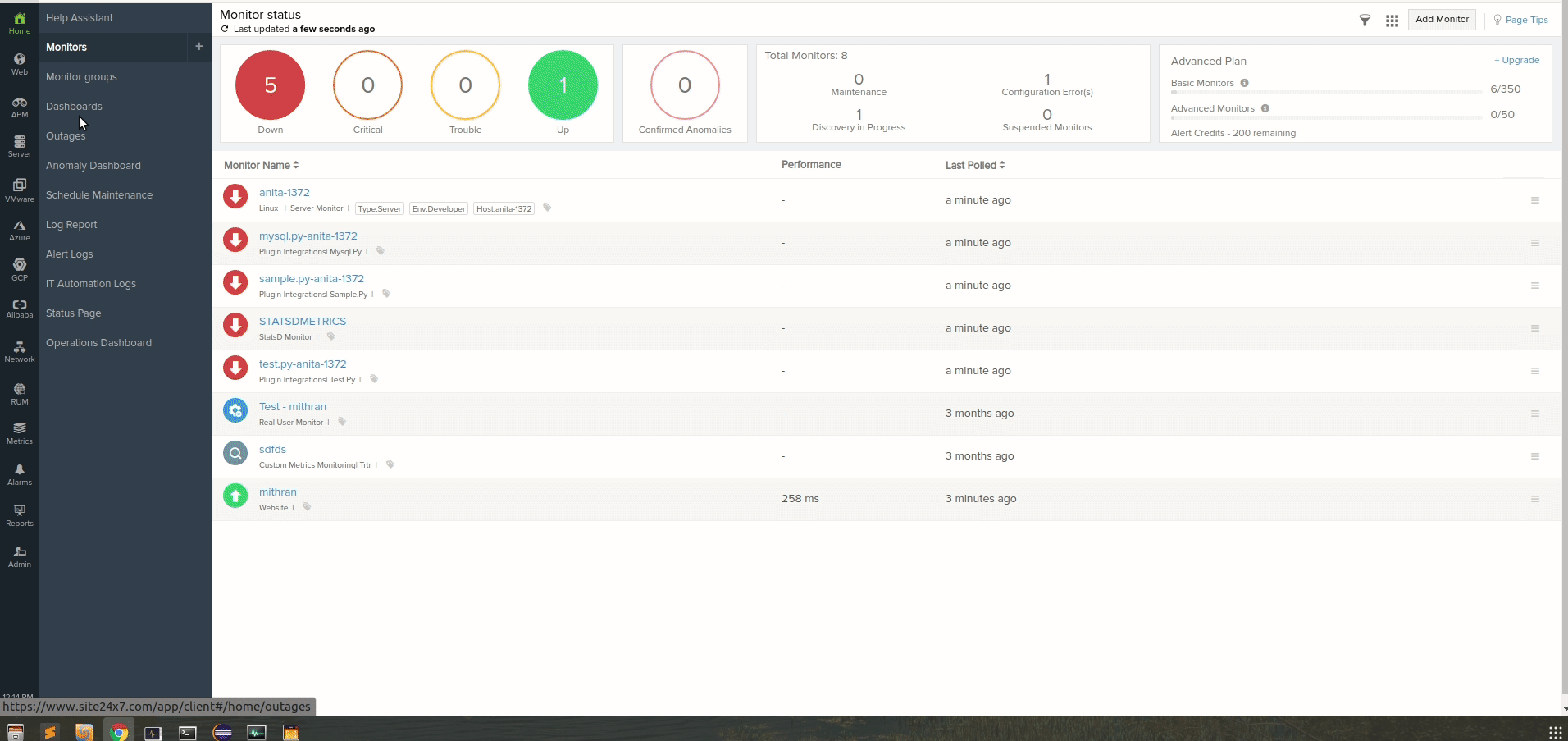 - Log in to Site24x7 and go to Home > Dashboards > Create new Dashboard.