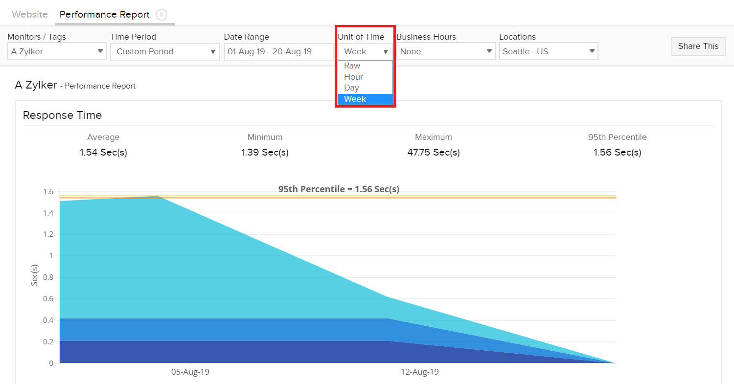 I would like the option to select Unit of Time if I select a Custom Period for Performance Report. Currently for last 30 days/this month the unit of time has options like RAW, Hour, Day, Week. For last month and this year the options are Hour, Day & Week. But the moment you select Custom, Unit of Time option is removed.
