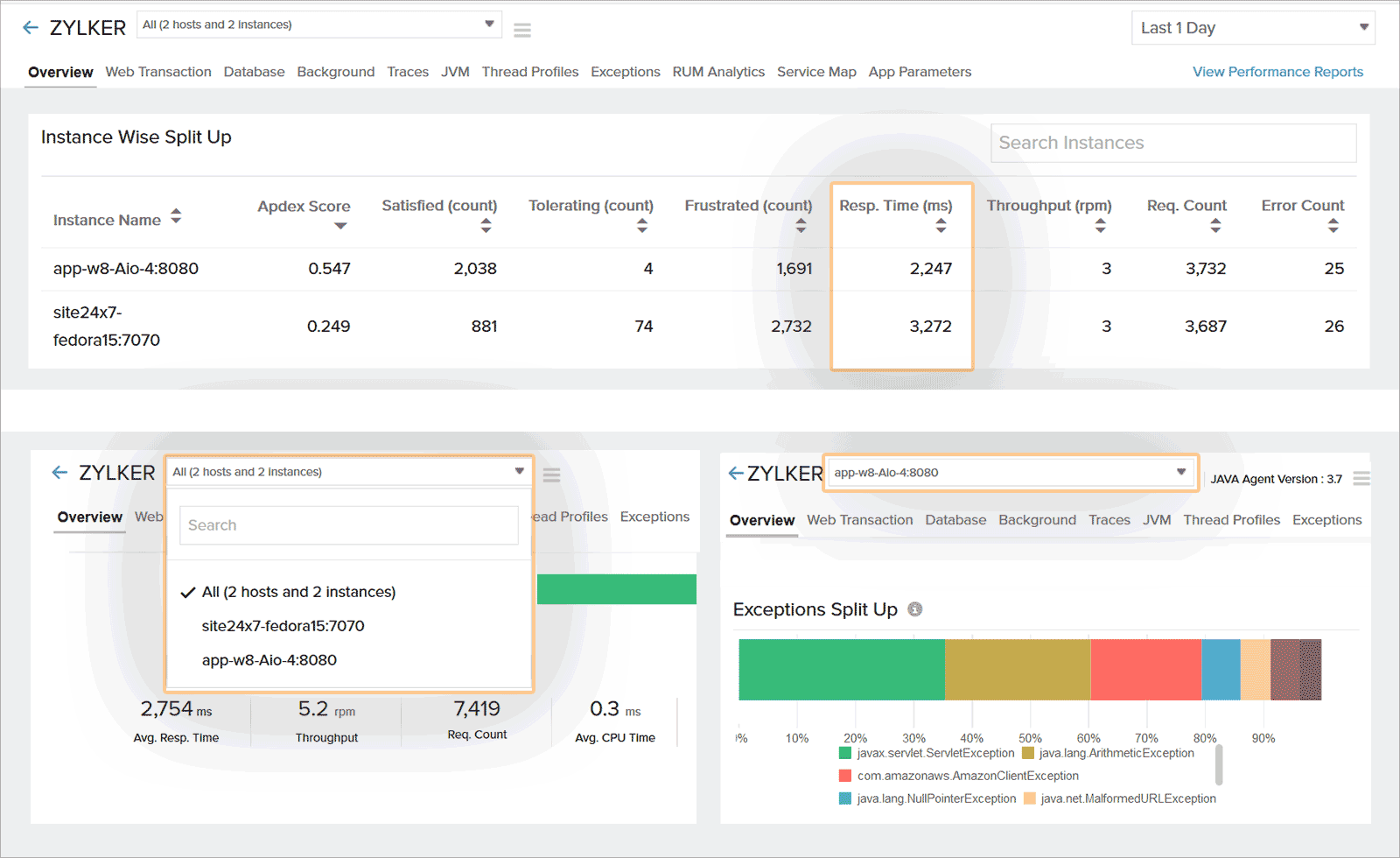 Let's say your application has two instances. While the response time of one instance is within the specified threshold limit, the response time of the other instance has spiked up. This could be caused by various factors, including issues with load balancing or network problems, but when there's an elevated response time in one instance, your overall application response time is negatively affected, which can be misleading while debugging.