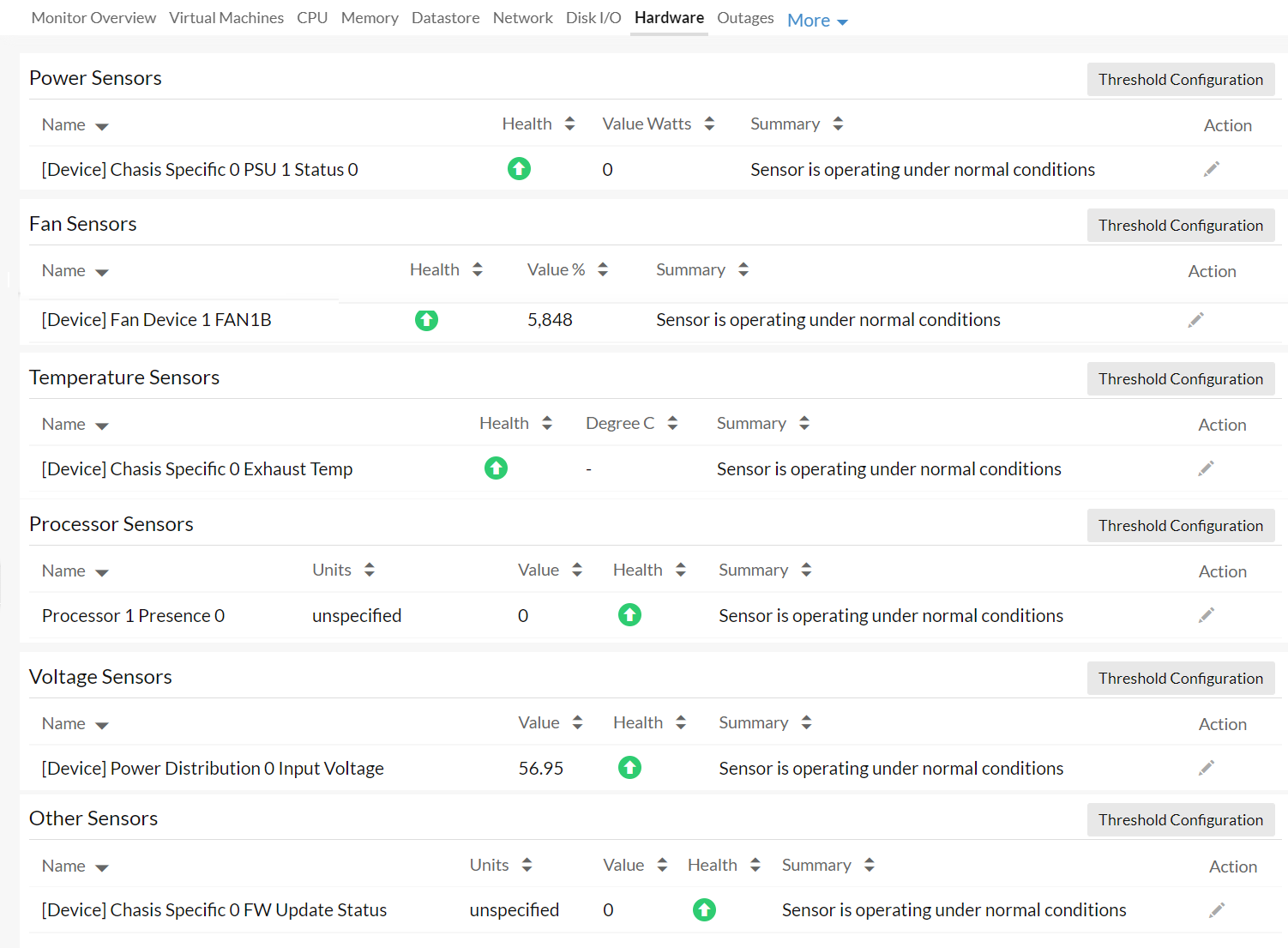By October 31, 2021, we will be migrating these metrics to a new monitor type under VMware > VMware Resources > Hardware. All thresholds configured for hardware-related metrics in the VMware ESXi monitor will be deprecated by October 31, 2021.