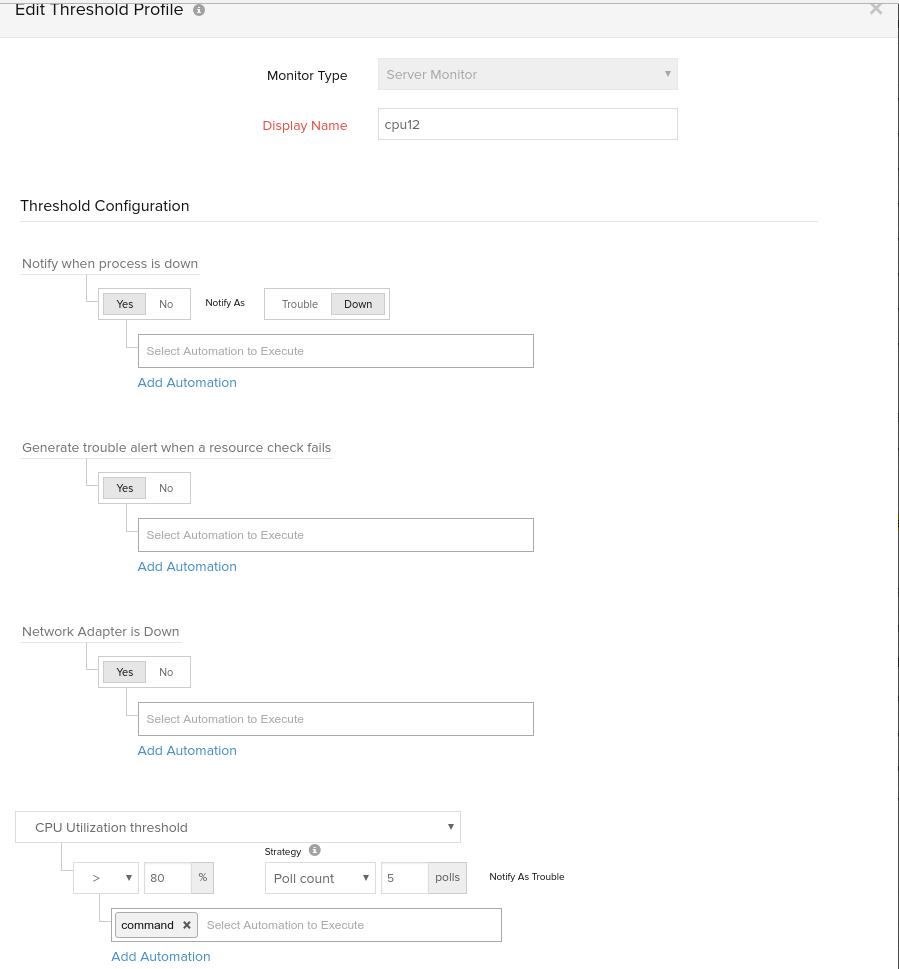The first option will execute the IT Automation when the overall CPU utilization exceeds the set threshold, while the latter will execute the IT Automation when the particular service/process' CPU utilization exceeds the set threshold.