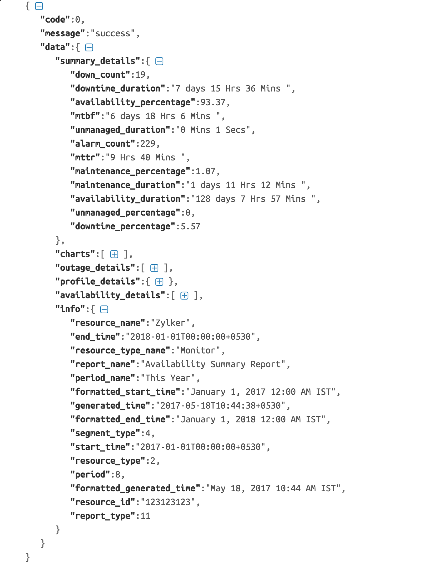 Fig.2: Sample JSON response for existing Availability Summary Report