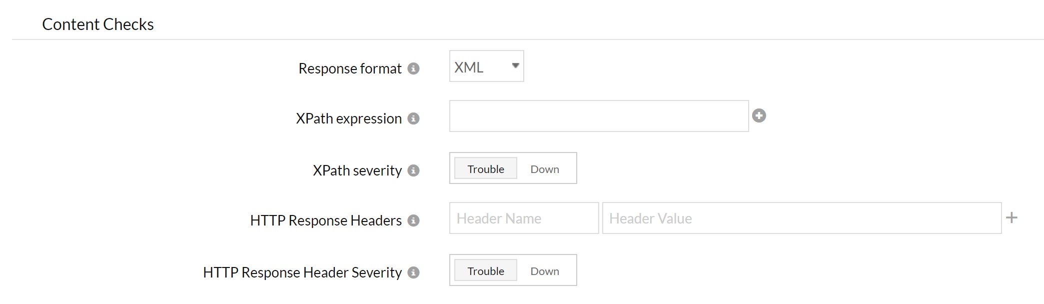 Can the webmonitor be considered as a REST API? If so you can use the REST API Monitor to monitor the rest api and check the response using XPATH Expression. Navigate to Web tab > REST API > Click on the + icon > Add the REST API Endpoint url > in the content checks section, choose Response format as XML > In the XPpath Expression give your expression.