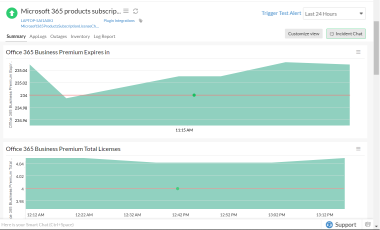 Site24x7 has introduced the Microsoft365ProductsSubscriptionLicenseCheck plugin to monitor your Microsoft 365 subscriptions and notify you of their expiration well in advance.