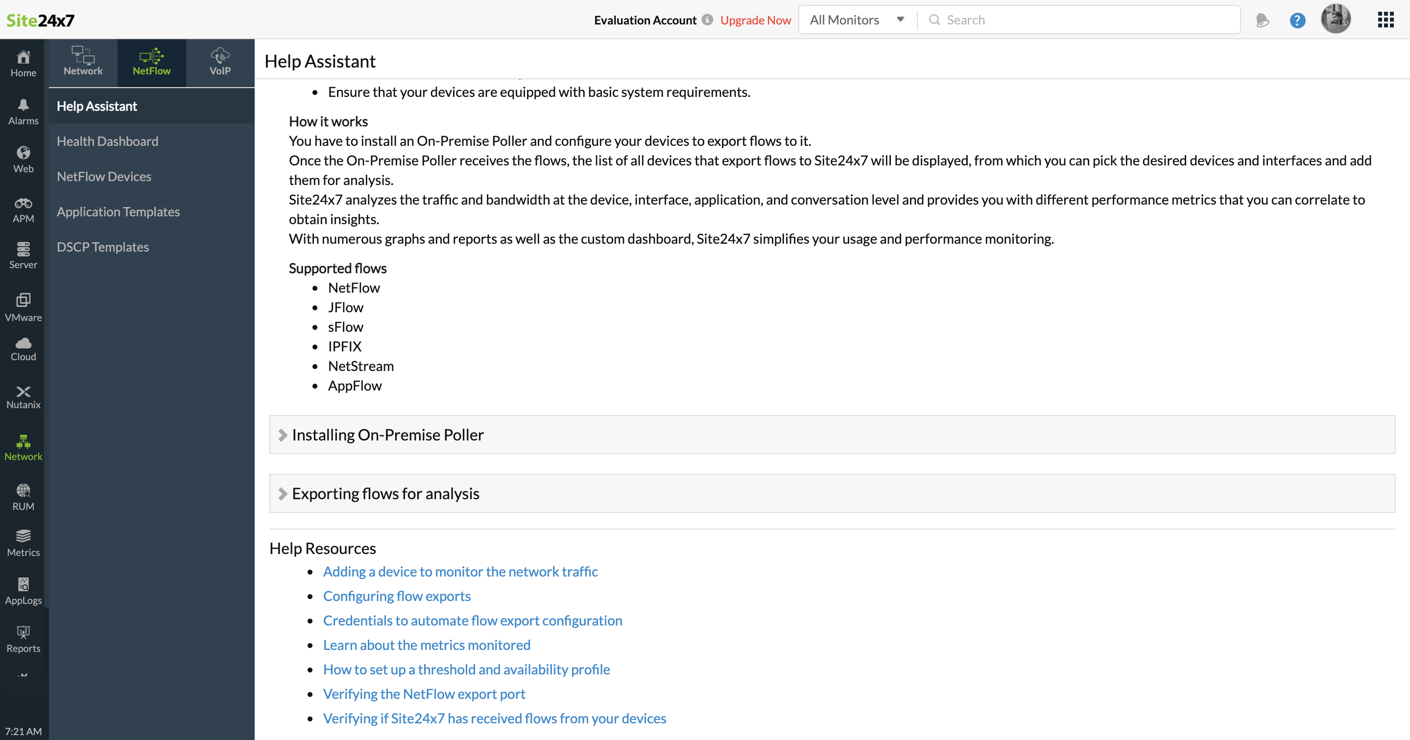 Please refer to our help docs for further information on getting started and adding your devices to monitor NetFlow, sFlow, J-Flow, and others.