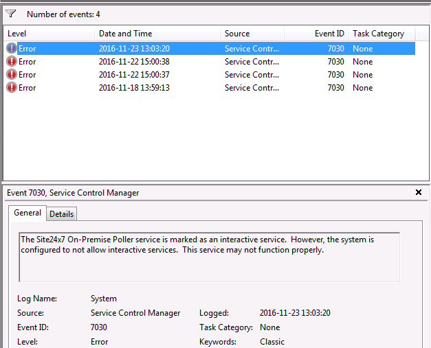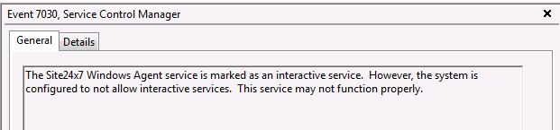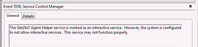 the same error comes up for the Site24x7 Agent Helper service and the Site24x7 Windows Agent service.
