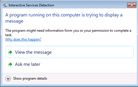 When starting the OnPremisePoller service i get the Interactive Services Detection message