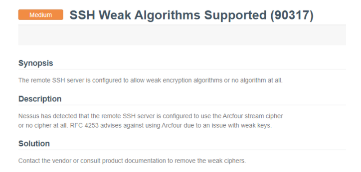This is showing up on versions 5.1.0, 4.6.3, and 5.0.0.  Is there a way to edit the config and/or registry to remove those weak algorithms or on the next update, is there plans to make it more secure?  If so, can you provide a date that is planned so I can put in an exception request for all the servers instead of removing it?