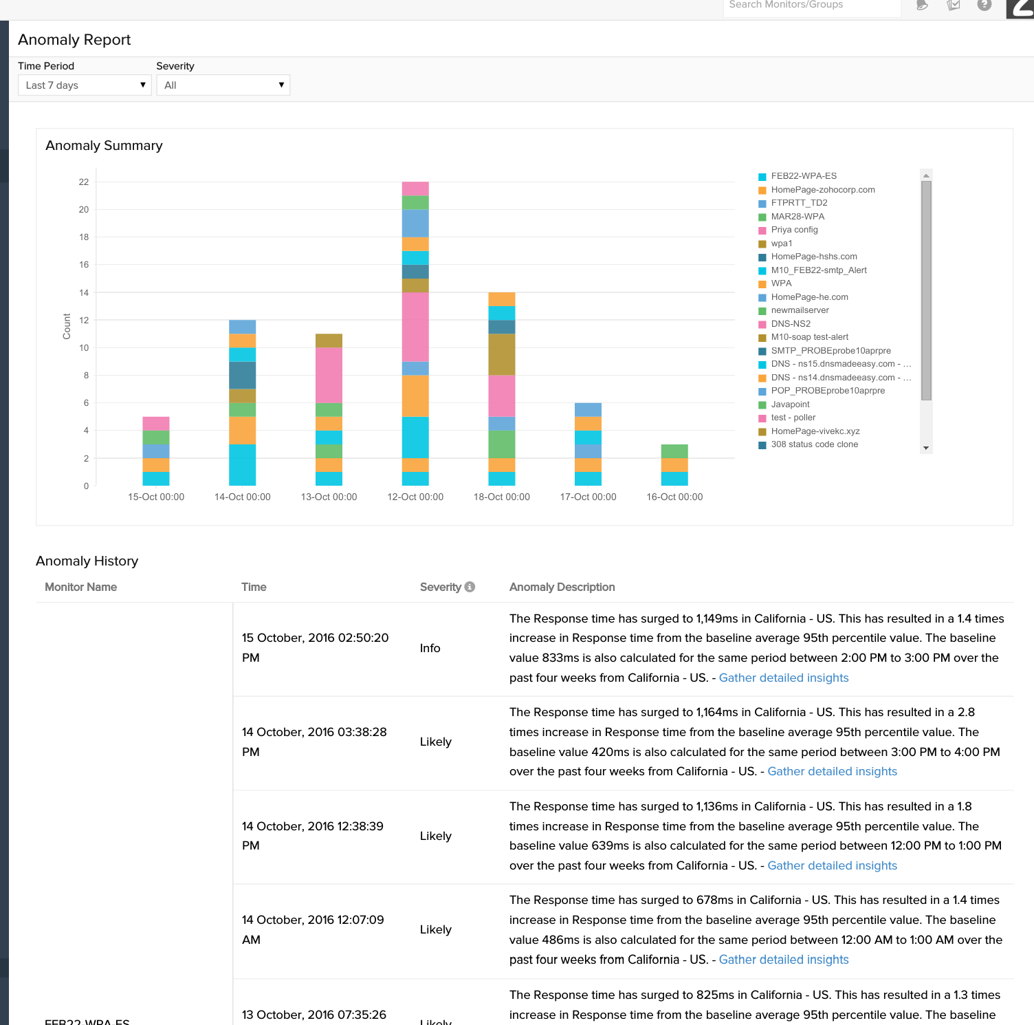 2. Coming to your second question, as of now Anomaly is detected based on statistics and no machine learning is involved. We will be comparing the present data collected with last four weeks data of same timeslot. For example, if there is a >90% CPU consumption for a server on Wednesday 11am to 11:30am, then this will be compared with the data of 11am to 12pm of last four week's Wednesdays. If there is any hike in the present value when compared to baseline value, then it will be detected as Anomaly. So in your case, if a server is having >95% of CPU Consumption every Tuesday from 10am to 10:10am, we will compare this value with data from time 10am to 11am of last four week's Tuesdays. Then this spike is considered as normal in that time period and is not detected as Anomaly since every Tuesday 10am to 10:10am, we are having higher values.