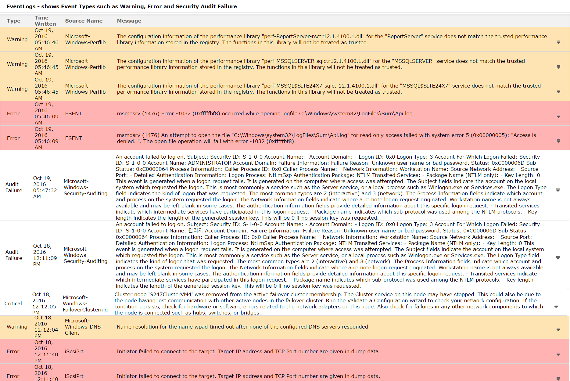 Later when the server is UP, based on the downtime triggered, the agent will collect the RCA report including the event logs and send it to the user.
