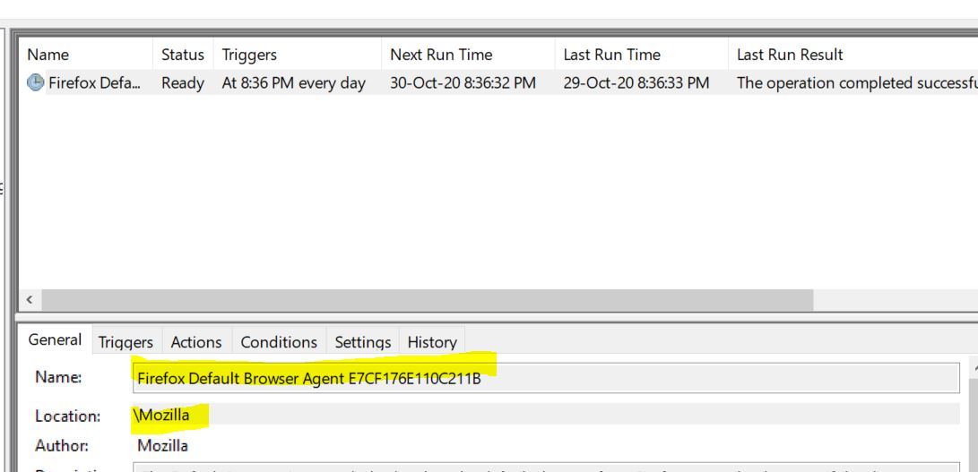 In screenshot task2, the name is 'Firefox Default Browser Agent E7CF176E110C211B' and path is '\Mozilla'. Give the task name in the script as '\Mozilla\Firefox Default Browser Agent E7CF176E110C211B'.