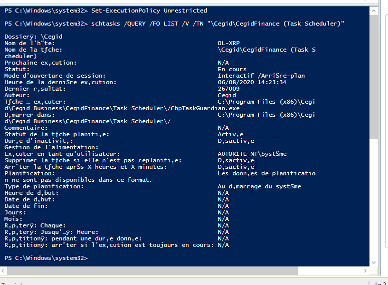 schtasks /QUERY /FO LIST /V /TN "\Cegid\CegidFinance (Task Scheduler)"