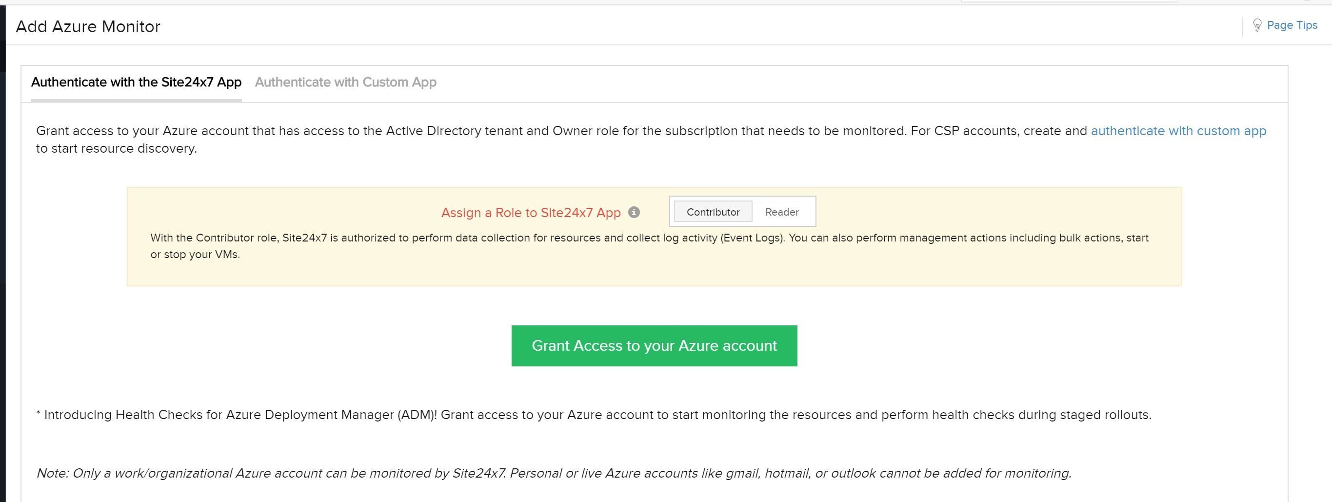 Note: Grant access to your Azure account that has access to the Active Directory tenant and Owner role for the subscription that needs to be monitored.