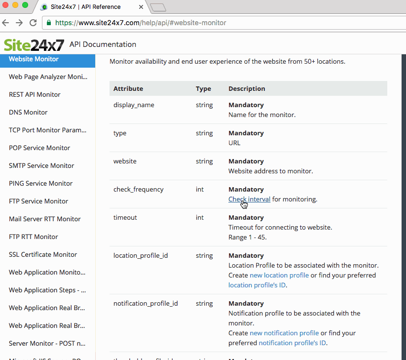 At Site24x7, we’d like to make it easy for you developers to integrate Site24x7’s powerful and flexible APIs with your tools. To help you achieve this, we’ve recently revamped our API documentation to simplify the way you understand and use our APIs. A few of the changes are listed below: