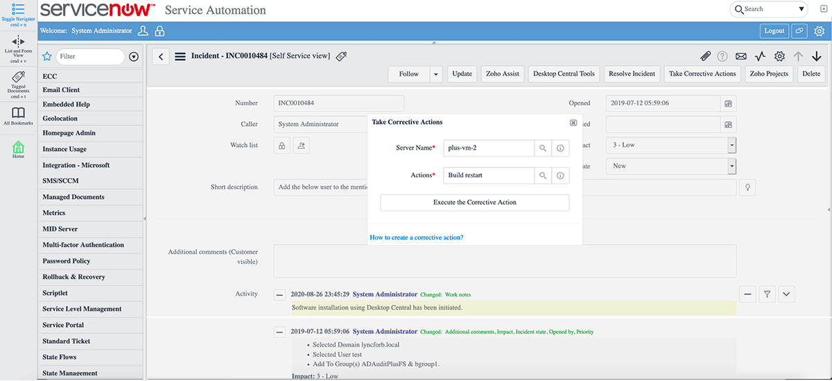 The time taken to execute corrective actions and decrease MTTR is paramount when handling 100's of servers and applications. With this integration, you can monitor servers and applications and handle tickets seamlessly without switching tabs.
