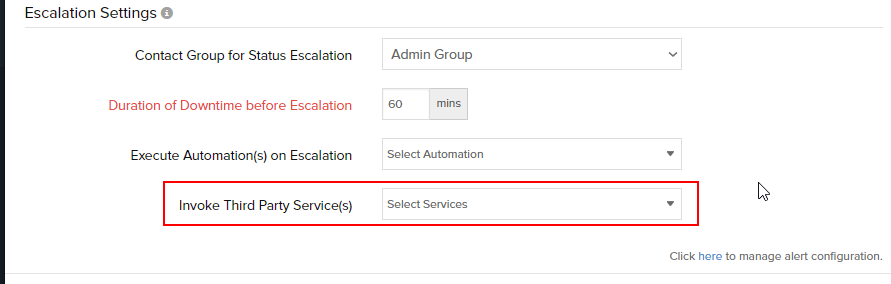 You can set a notification profile to have escallation settings. We have now supported 3rd party Integration within Escalation settings.