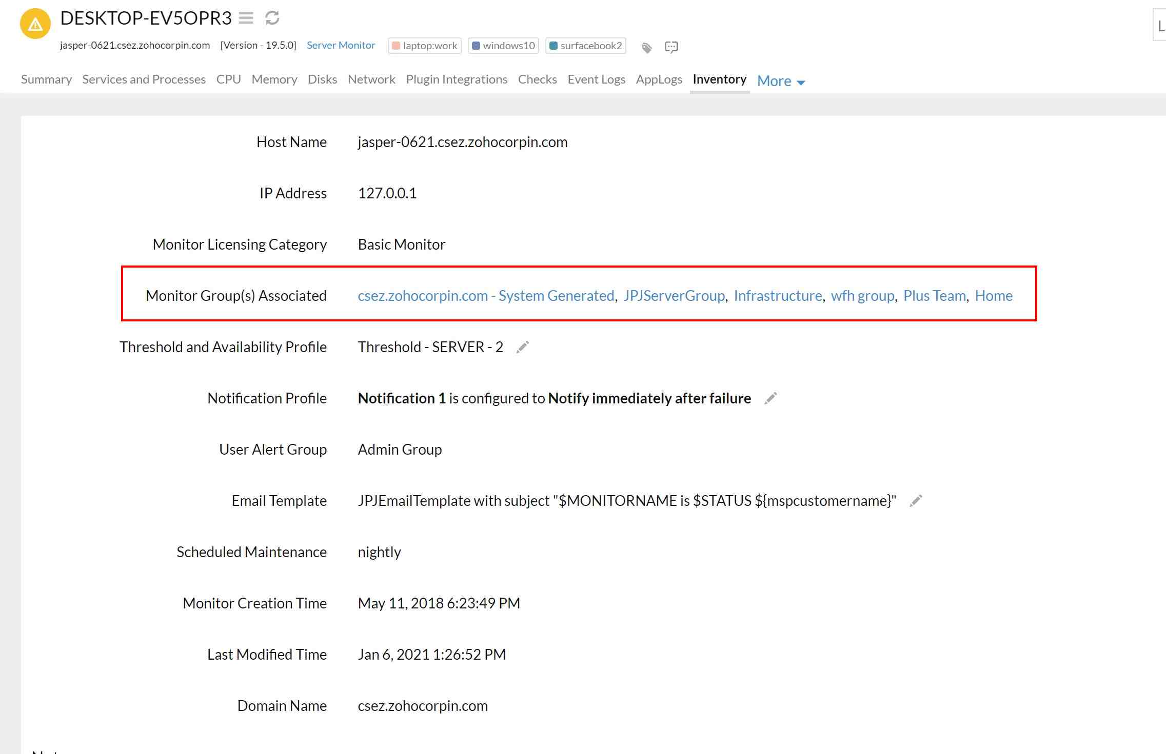 >>>Also it will be good to have cross reporting functionality i.e. for a monitor, I should be able to see which group and its parent group it belongs to.