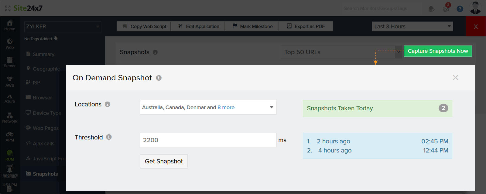 You can trigger On-Demand Snapshots as and when you experience a sluggish webpage. This will help you analyze webpage performance and find out which resources and domains are slowing your page down, without overwhelming you with excess information.