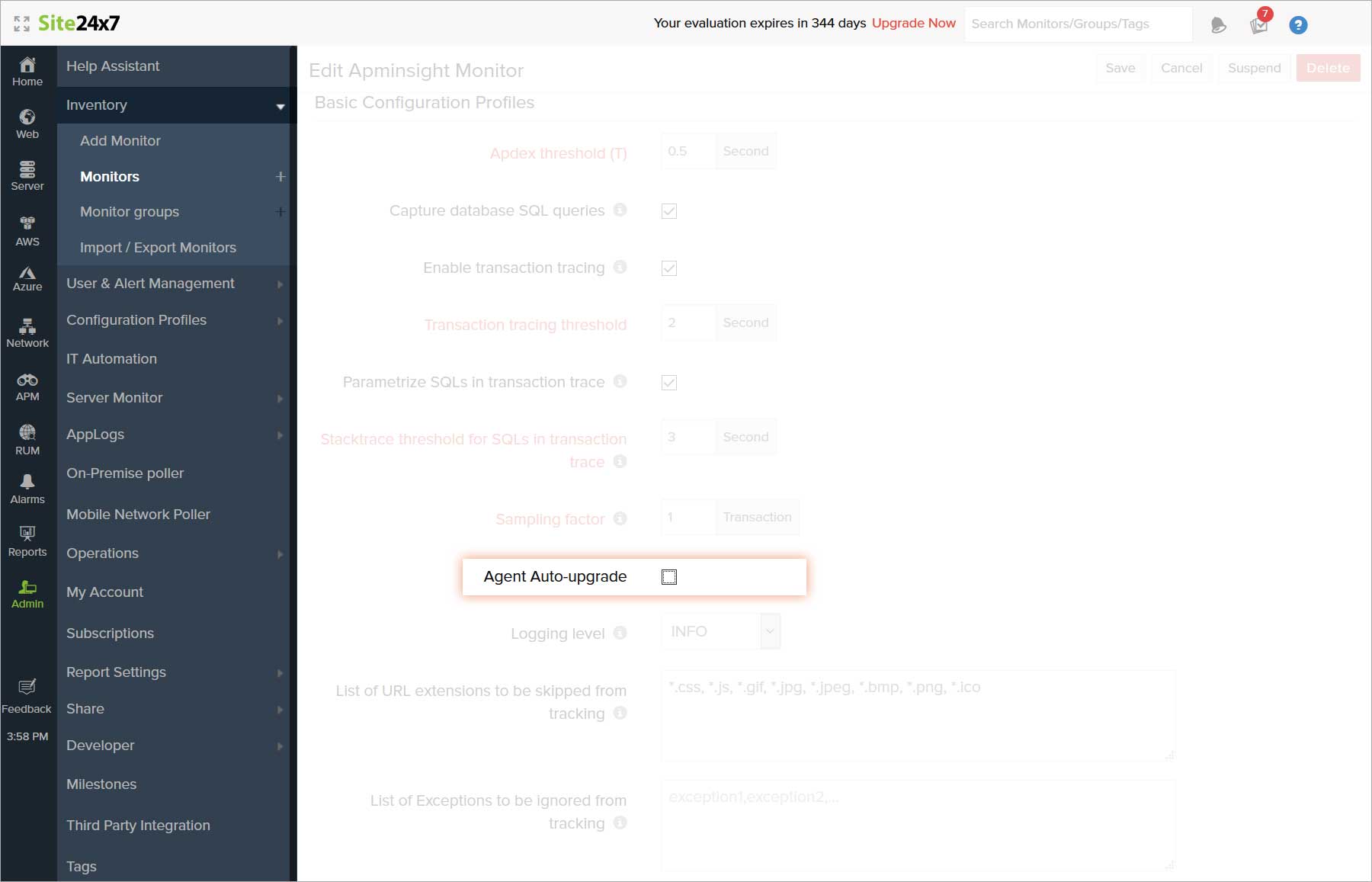 Once Agent Auto-upgrade is selected, your agents will be automatically upgraded whenever a new version is available.
