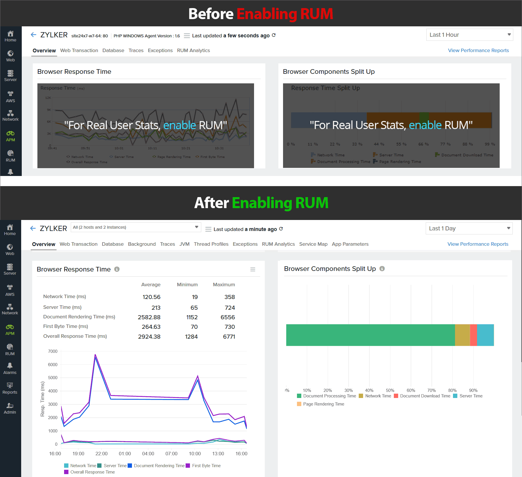 With APM Insight, you can identify and troubleshoot bottlenecks in your application. However, the way your application affects your end users might still remain a mystery. This is where real user monitoring (RUM) comes in handy.