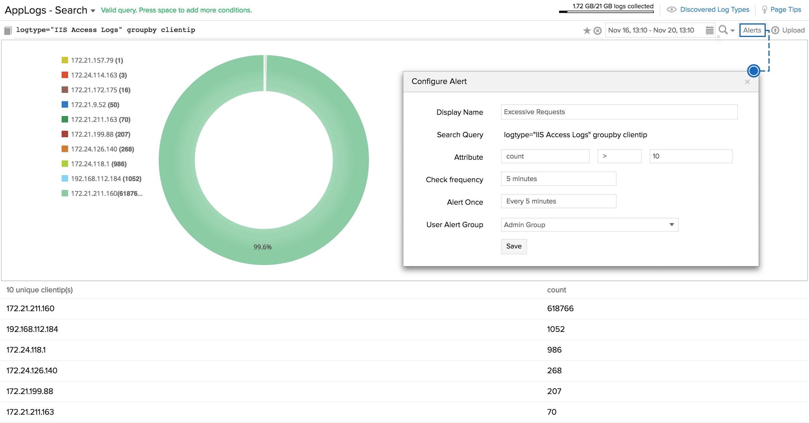 With AppLogs Alerts, you can configure and receive alerts when your servers receive too many requests from a single source.