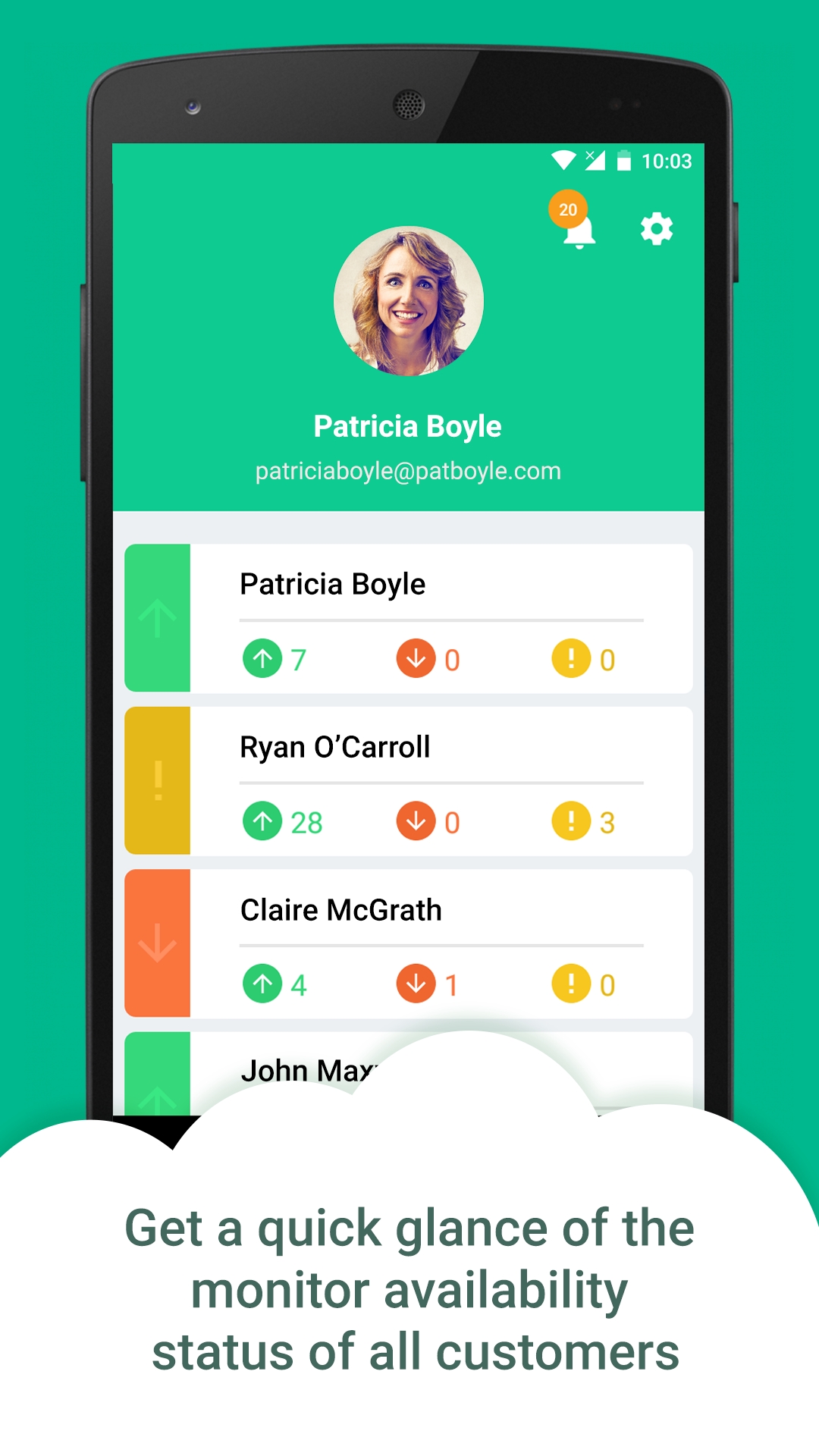 - A control panel that gives the MSP user a quick glance of the monitor availability status of all customer accounts.