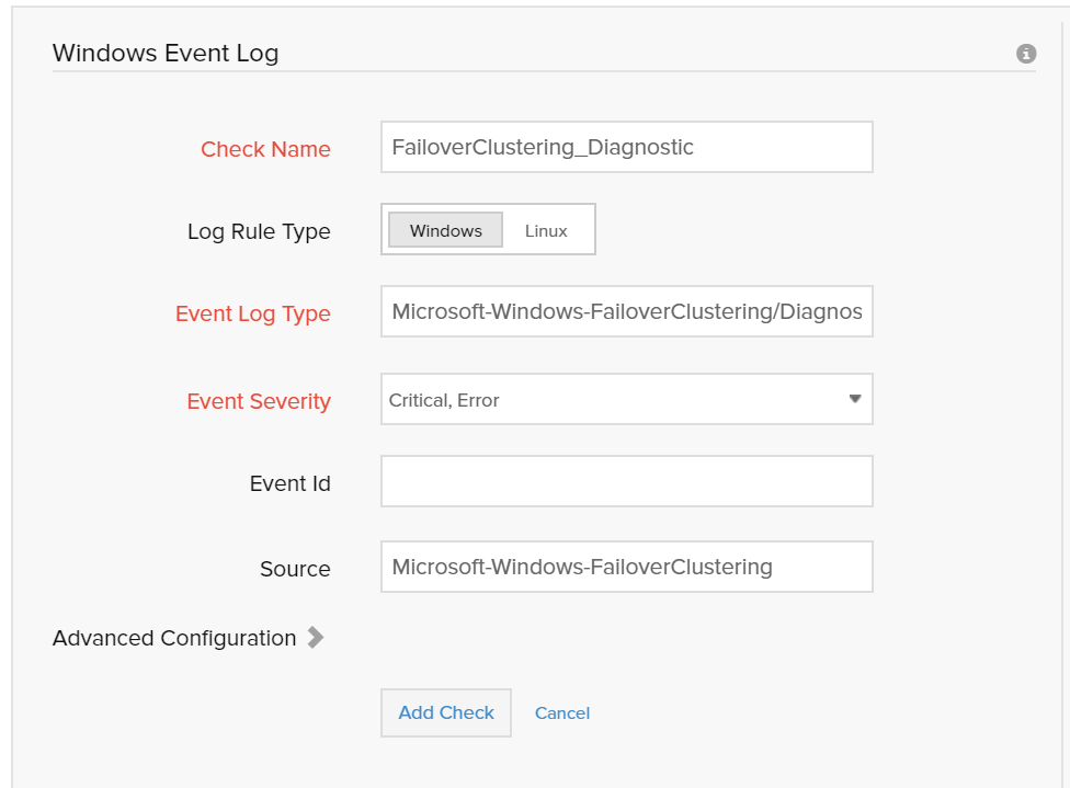 How should I monitor and configure a custom eventlog in Windows Event Viewer? The path to the log in event viewer is: Applications and Services Logs\Microsoft\Windows\FailoverClustering\Diagnostic