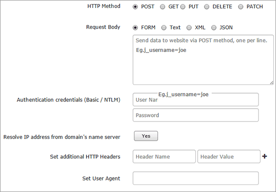 - Authentication Credentials: Provide User Name and Password to monitor websites that require Basic/NTML authentication.