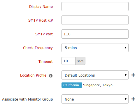 - Location Profile: Select a location profile from the drop down list from where the SMTP service can be polled from the selected location.