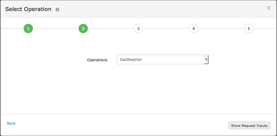 - Select Operation: Choose the required Operation from the drop down and click Show Request Inputs.
