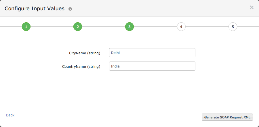 - Configure Input Values: Add requisite value against its corresponding parameter and click Generate SOAP Request XML.