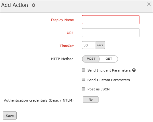 - URL: Specify the URL which triggers the action.