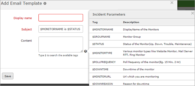 - Subject: Enter the subject of your customized template. The format should be $MONITORNAME is $STATUS where you can change the values of $MONITORNAME and $STATUS according to your requirement.