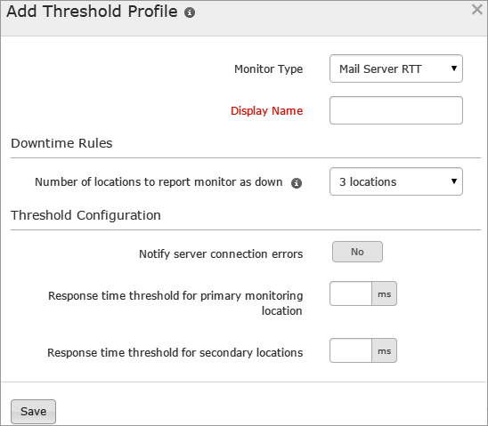 Response time threshold for primary monitoring location: Enter a value in milliseconds to get notified when the response time from primary location crosses the specified value.