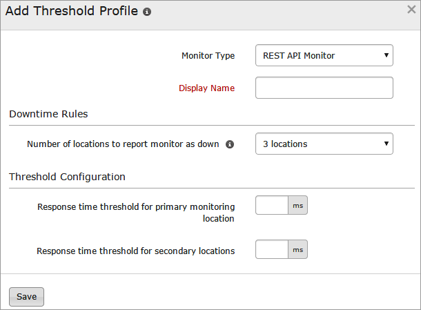 Response time threshold for primary monitoring location: Enter a value in milliseconds to get notified when the response time from primary location crosses the specified value.