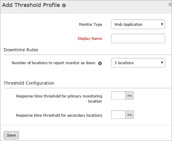 Response time threshold for primary monitoring location: Enter a value in milliseconds to get notified when the response time from primary location crosses the specified value.