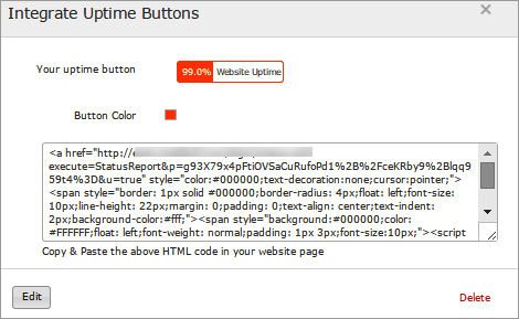 - Uptime Button code: Copy and paste the button code onto your webpage to display the Uptime Button feature in your website.