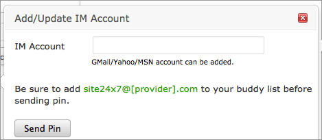 - IM: Configure your Trouble/Down/UP alerts using Instant Messenger. Site24x7 supports Gtalk, Yahoo, MSN.