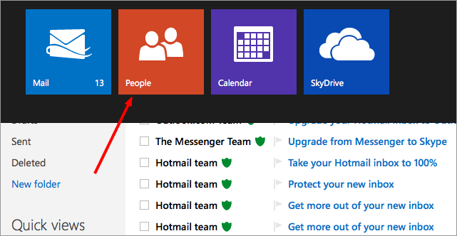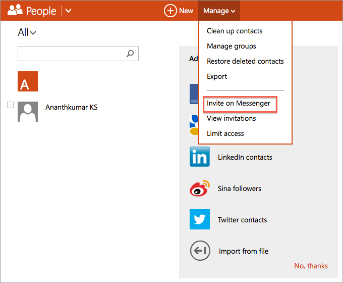 - In your MSN account, use the drop down menu on the top left pane and navigate to People > New.