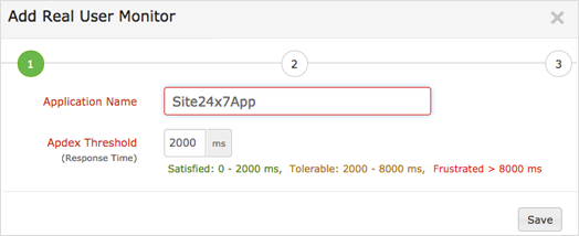 - A script code will be generated in Add Real User Monitor screen. Copy and paste the script code to the pages of your application or website which you would like to monitor.