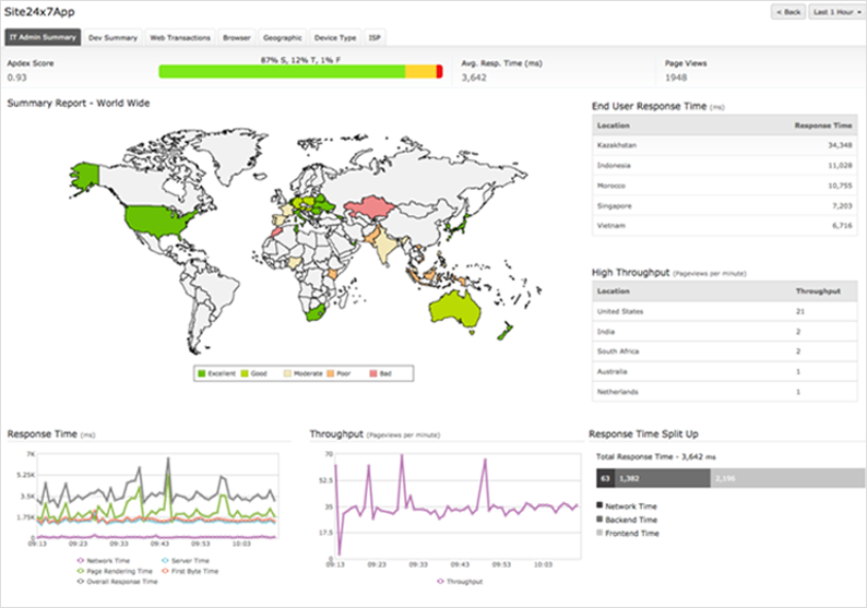 Clicking on IT Admin Summary tab gives you a graphical representation of application response time and throughput globally.
