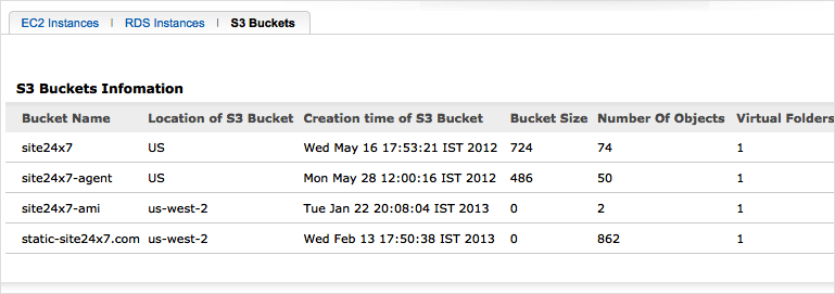 | Virtual Folders | The number of folders present in a particular S3 bucket |